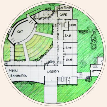 Triveni Kala Sangam, a cultural and educational complex located parallel to the bustling Tansen Marg, sets itself apart from the other prominent structures surrounding the Mandi House gol chakkar in its approach to the building's elevation. The structure's parallel orientation to the road is intentional, allowing for a more subtle elevation that gradually reveals its most notable features, including an open amphitheatre and lush vertical gardens, as one walks through the entrance. The building's L-shape and modest entrance are further softened by verdant foliage that appears to engulf the entrance, creating a gradual increase in scale that contrasts with the bold and stark elevations of neighboring structures.